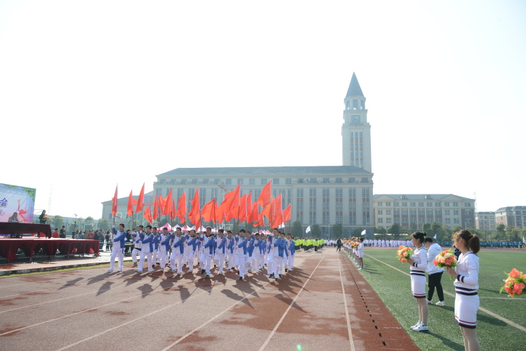 本次运动会设男子、女子组共10个单项,4个集体项目,共936名运动员报名参赛,1676人次参与比赛。上午9点45分,校长陈晓斌教授宣布:“上海中侨职业技术学院2018年度校运动会开幕!”伴随着激昂的运动员进行曲,国旗班、鲜花方阵、各二级学院代表队、教工方队、表演方队等依次入场。