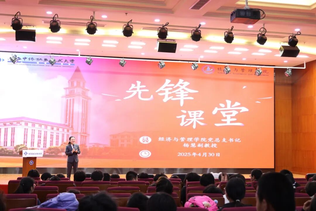 2025 年 4 月 30 日,上海中侨职业技术大学继续教育学院在图文信息楼 2 楼报告厅成功举办了 “先锋课堂” 系列思政教育活动。此次活动特邀经济与管理学院党总支书记杨慧副教授担任主讲嘉宾,为学院百余名学子呈上了一堂内容丰富、别开生面的思政课,在学生心中播撒下信仰、健康与理想的种子。