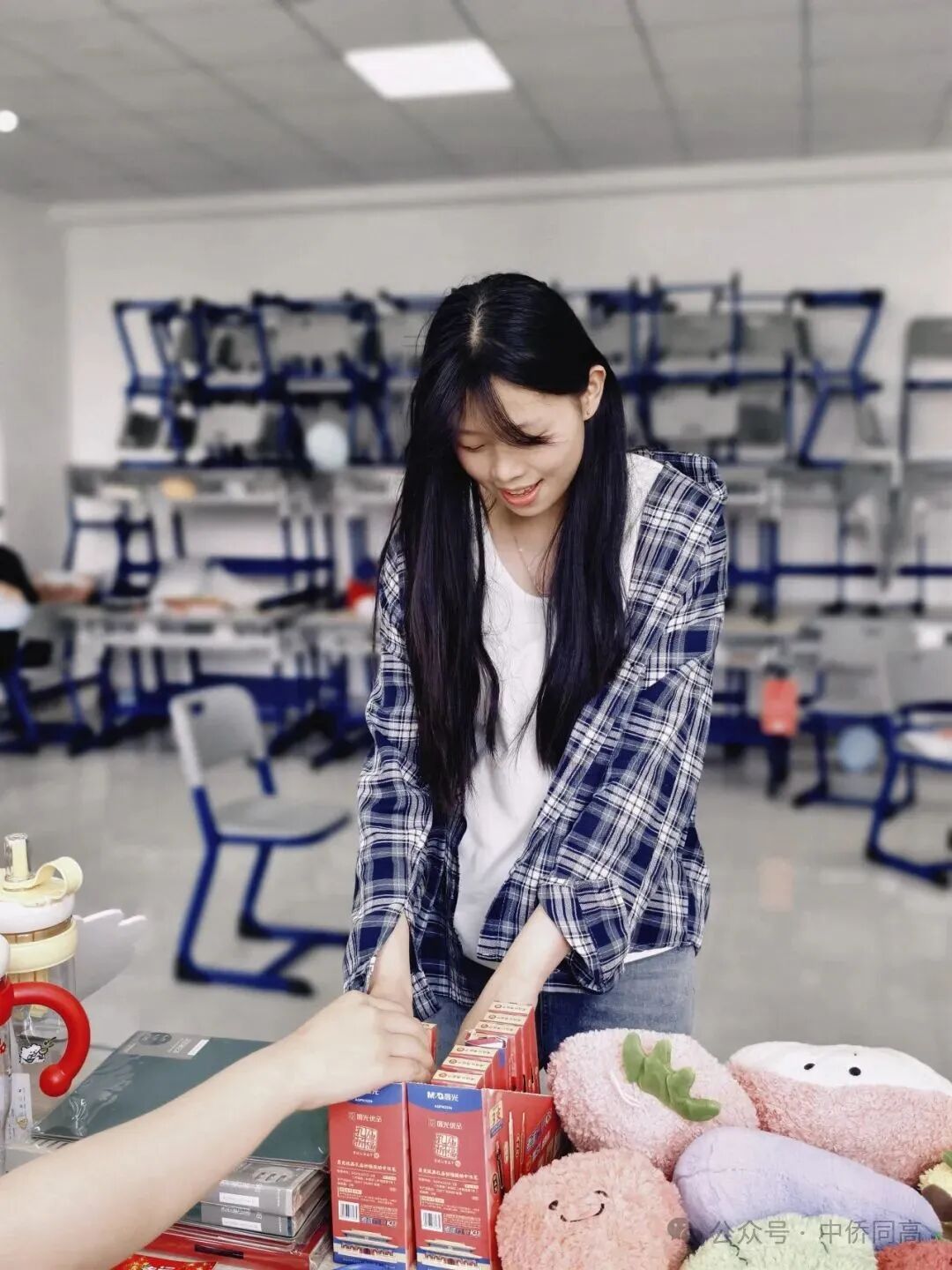 集齐 6 个不同班级的盖章,就能解锁抽奖资格!518 教室前,手持 “战绩卡” 的同学们排起长队,手持电风扇、可爱杯子、文具套装、水果玩偶等惊喜奖品陆续被领走~ ✨ 现场直击:当抽到心仪奖品时,同学们的眼睛瞬间亮起来,满载而归的笑容成为节日里最治愈的画面! 这场充满童趣的游园会,不仅是一次欢乐的相聚,更是一次心灵的 “返璞归真”。暂别忙碌的学业,同学们在游戏中释放压力、增进友谊,用童真与热爱书写了一段难忘的校园记忆~