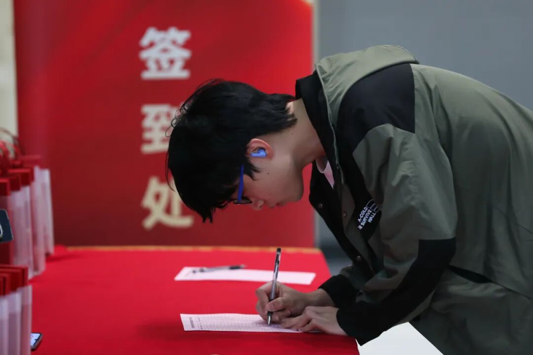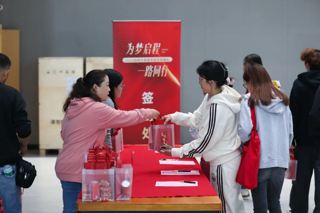 典礼开始前,同学们签到入场,并领取伴手礼。