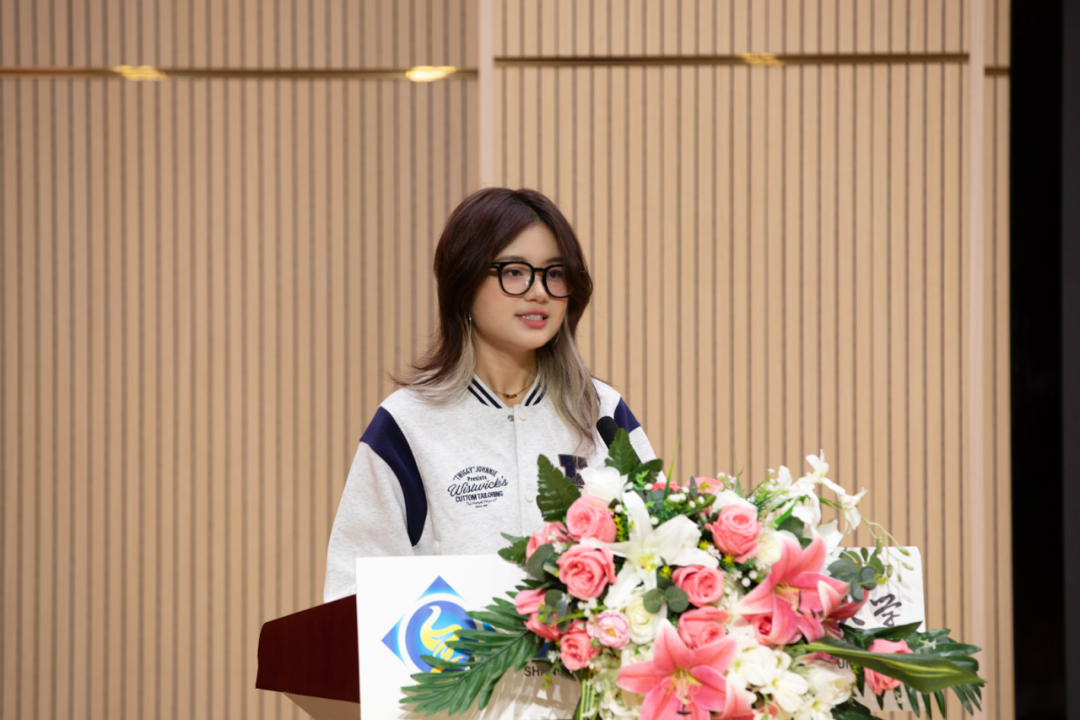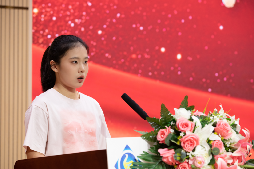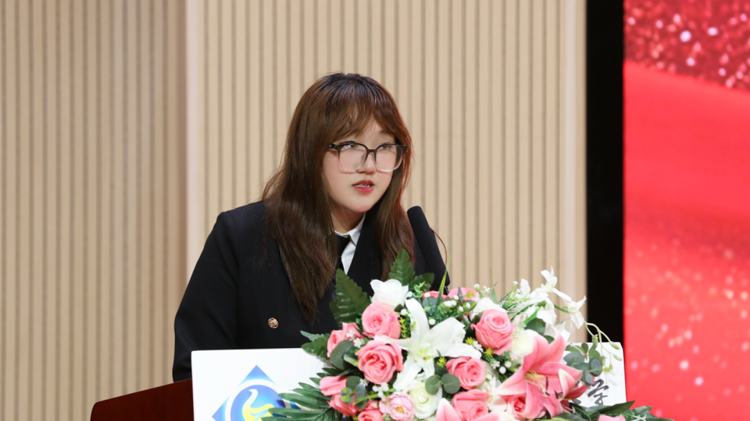2025级新生代表周子媛同学上台发言,周同学发言充满朝气也说出了所有同学的心声。