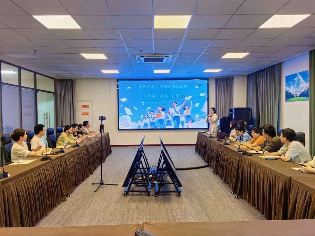 9 月 26 日,中侨同高 2025 级韩国延世班秋季第一学期首月工作汇报在图文信息楼 108 顺利开展。继续教育学院院长陈银桥、继续教育学院学生事务主任洪丽丽、继续教育学院分团委主任庄晓芸以及中侨同高各班班主任参与会议,本次汇报由王老师主持,围绕开学筹备、课堂教学、班级管理、家校沟通及反思规划五个核心维度,全面总结班级首月运行情况,明确下一阶段教学与管理方向。
