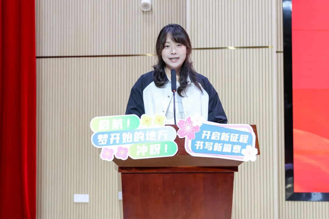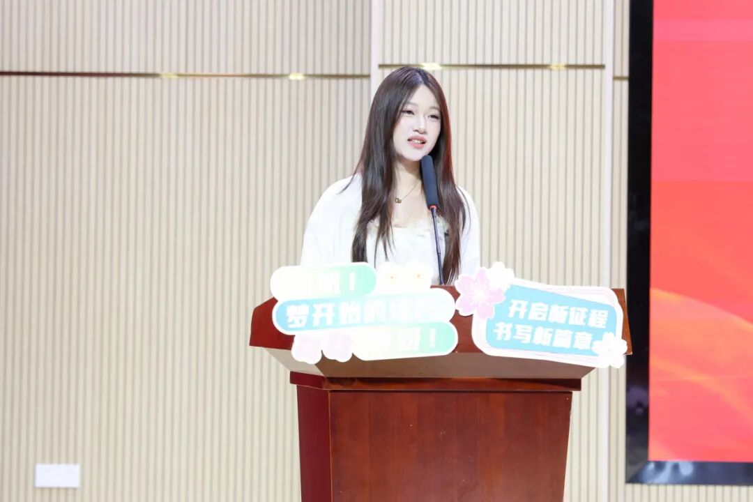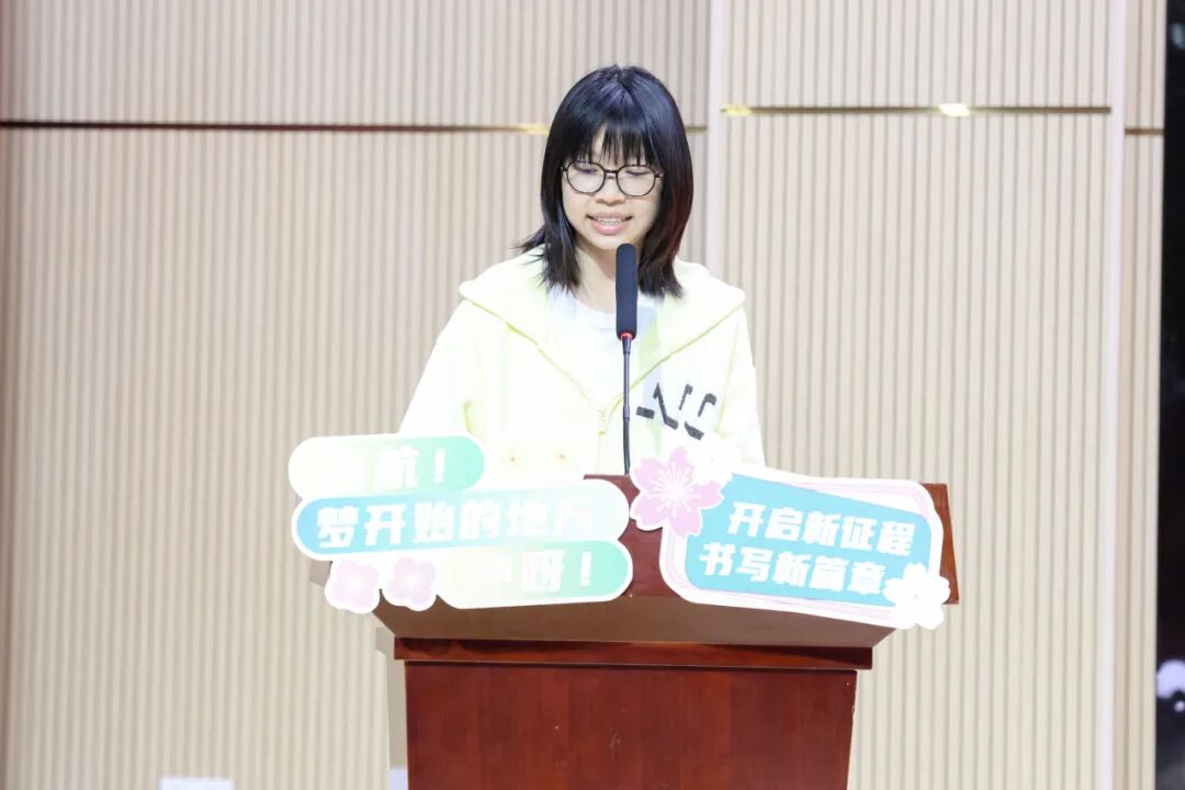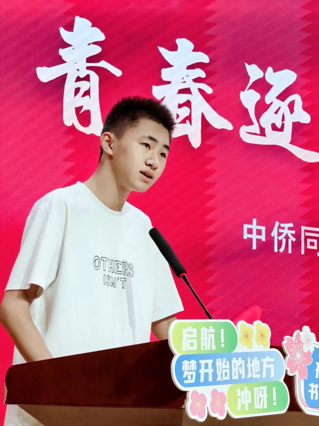 日高班新生周路尧作为新生代表发言。她先向筹备典礼的师生致谢,各位同学虽选择该校的缘由各不相同,却相聚于中侨日高。中侨日高既能让大家扎根本土文化,又能借助日语学习和国际课程开拓视野。同时指出日高班新生日语基础存在差异,需攻克日语难关、掌握国内高中核心知识,也要理解中日文化并学会包容与尊重。未来,她也将以谦逊的态度求知、真诚地与同学相处,深耕书本知识且积极参与校园活动,认为困难是成长的铺路石。最后代表全体新生承诺,会珍惜校园时光、努力奋进,不负期盼与青春,并向师生及学校送上祝福。