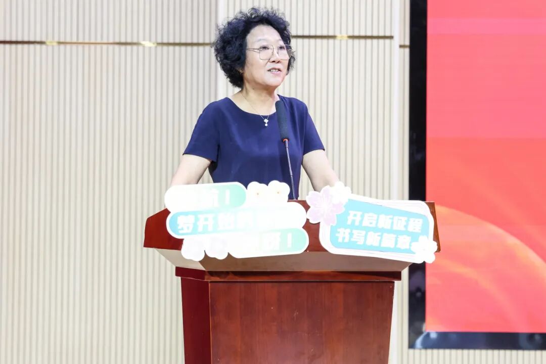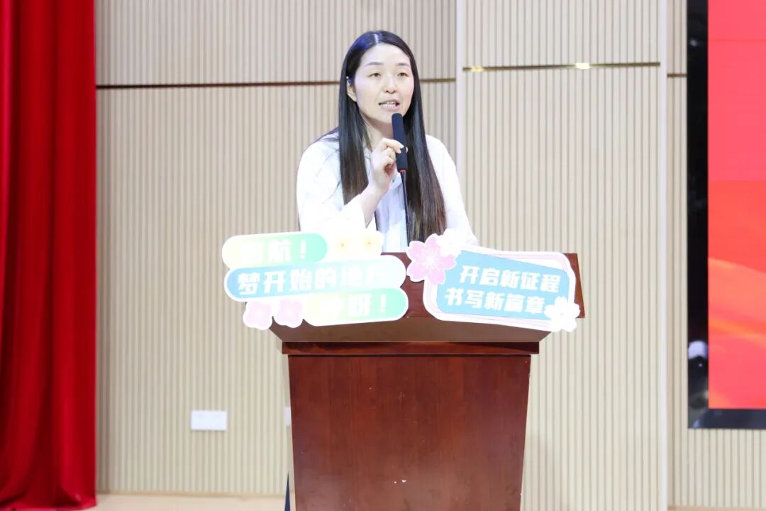 王静教师作为优秀教师代表发言。她首先欢迎高一新生开启高中生活,也欢迎高二、高三同学开启新征程。随后分享 “勇敢与自信”、“坚强与独立”、“向上成长” 三个关键词,鼓励同学们在高中阶段的难题与竞争中,即便心怀忐忑仍坚定向前,在课堂上勇敢表达想法。面对挫折与压力时,既要保持韧性、积极调整,也要学会独立思考、不随波逐流。同时要永葆对知识的好奇与对卓越的渴望,尽早规划未来方向。最后,她祝愿同学们新学期快乐满格、学业顺利。