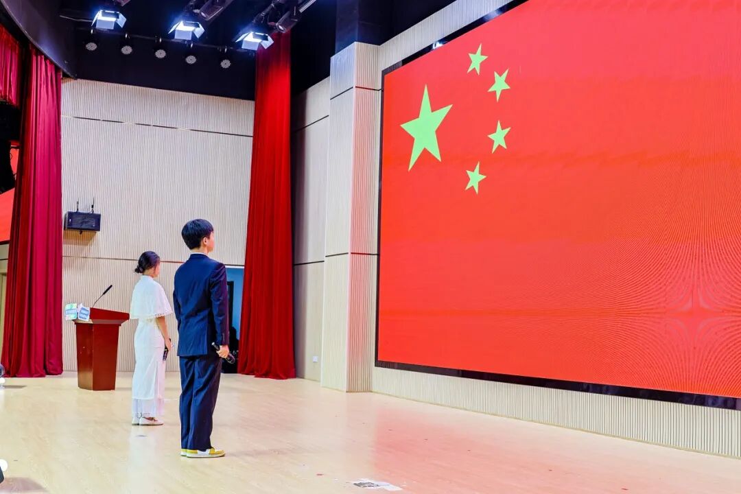 伴随着高亢嘹亮的《义勇军进行曲》,全体师生齐唱国歌,开学典礼在庄严的国歌声中正式拉开序幕。