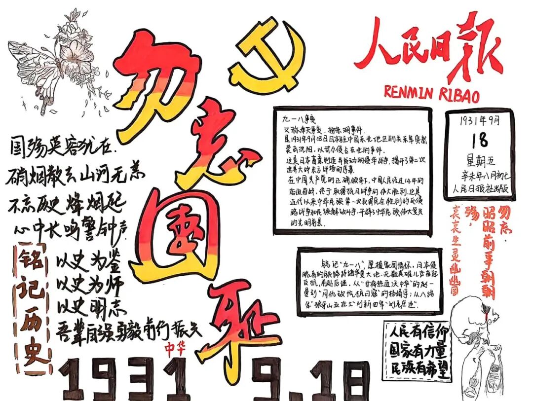 “九·一八事变”,又称“奉天事变”、“柳条湖事件”,是1931年9月18日日本驻中国东北地区的关东军突然袭击奉天(今沈阳),以武力侵占东北的事件。 “九·一八事变”是由日本蓄意制造并发动的侵华战争,是日本帝国主义侵华的开端,标志着世界反法西斯战争的起点,揭开了第二次世界大战东方战场的序幕。历史是最好的教科书,为了让同学们铭记这段屈辱而不屈的历史,培养深厚的爱国主义精神, 2025 年 9 月 18 日,我院开展了 “铭记九一八,奋进新征程” 主题手抄报制作活动,全体学生积极参与,共同用手中的画笔,绘出对历史的铭记,对未来的展望。