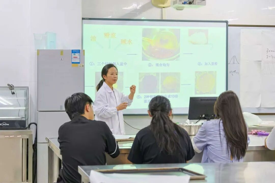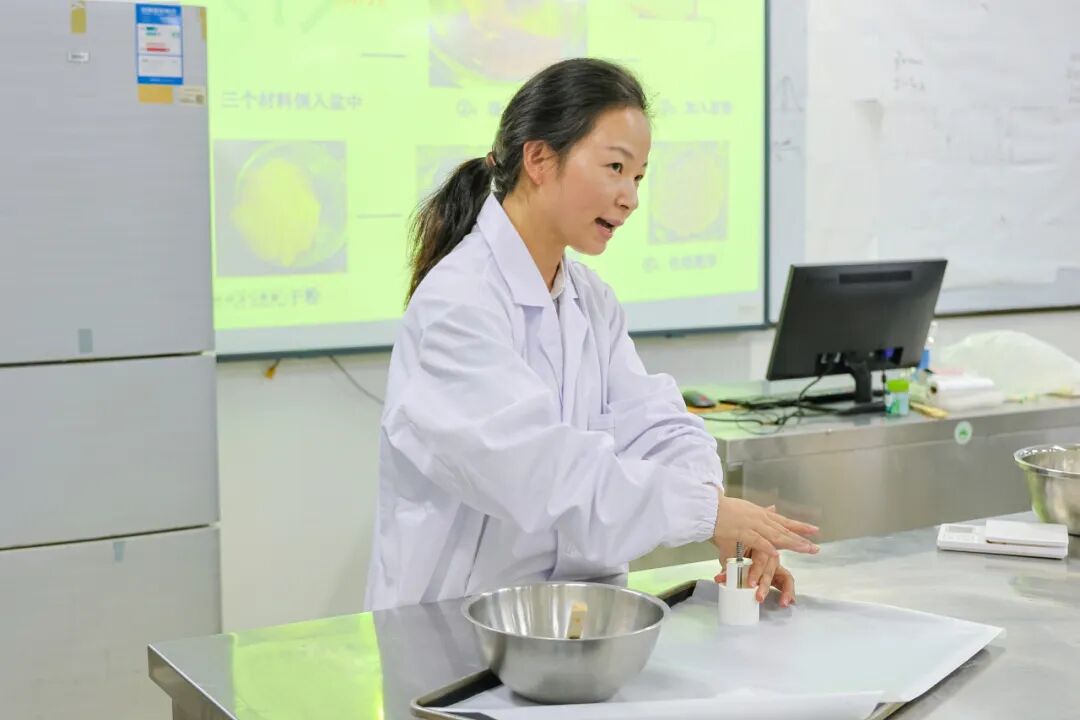 秋意渐浓,月满人间。在中秋佳节临近之时,为传承中华传统节日文化、丰富大家的文化生活,同时让学生近距离体验食品制作相关职业技能,9 月 22 日至 25 日,我院携手上海中侨职业技术大学食品药品学院,共同开展了一场别开生面的中秋月饼制作活动,为这个团圆的节日增添了别样的温暖与趣味。 活动开始前,上海中侨职业技术大学食品药品学院的陈菲老师及志愿者们提前做好了充足准备。从挑选优质的面粉、馅料、食用油等原材料,到备齐模具、烤箱等专业工具,每一个细节都力求完美。 陈老师对月饼制作流程进行了详细演示,从面团的揉制、馅料的调配,到月饼的成型与烘烤,每一个步骤都讲解得清晰透彻,确保每位同学们都能准确掌握制作要点。同学们围在一旁认真听讲,不时点头记录关键要点,眼神里满是对接下来动手制作的期待,能完成属于自己的中秋月饼。