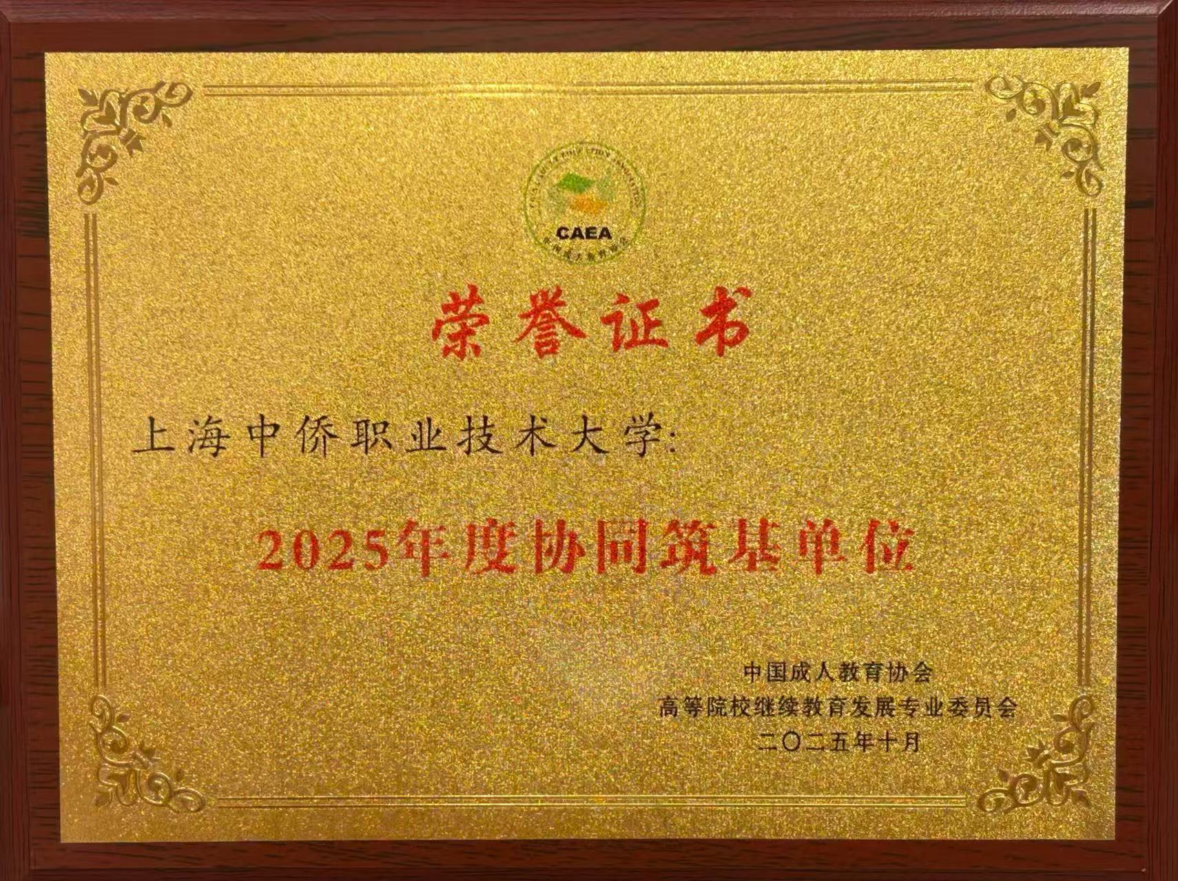 2025年11月20日,中国成人教育协会高等院校继续教育发展专业委员会第一届理事会全体会议暨“教育强国视域下高等继续教育品牌赋能与数智化拓新研讨会”在东北财经大学(大连)圆满召开。上海中侨职业技术大学凭借在服务国家战略、推进终身学习体系建设中的突出实践,荣获“2025年度协同筑基单位”,彰显了学校在终身教育领域的行业影响。同时,学校也成功入选“云赋匠能首批共建单位”,其继续教育学院搭建起了高质量发展的专属平台。