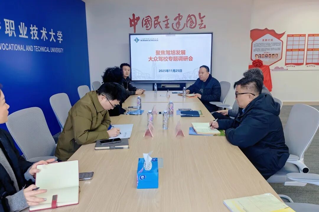 11月25日,聚焦驾培发展・大众驾校专题调研会在图文信息楼 504 会议室召开。上海中侨职业技术大学副校长刘淑芸、继续教育学院院长陈银桥、继续教育学院学生事务主任洪丽丽、物业负责人祝志强、后勤保卫处朱阳及大众驾校代表共同参会,围绕驾培服务优化展开深度研讨,推动校企合作提质增效。