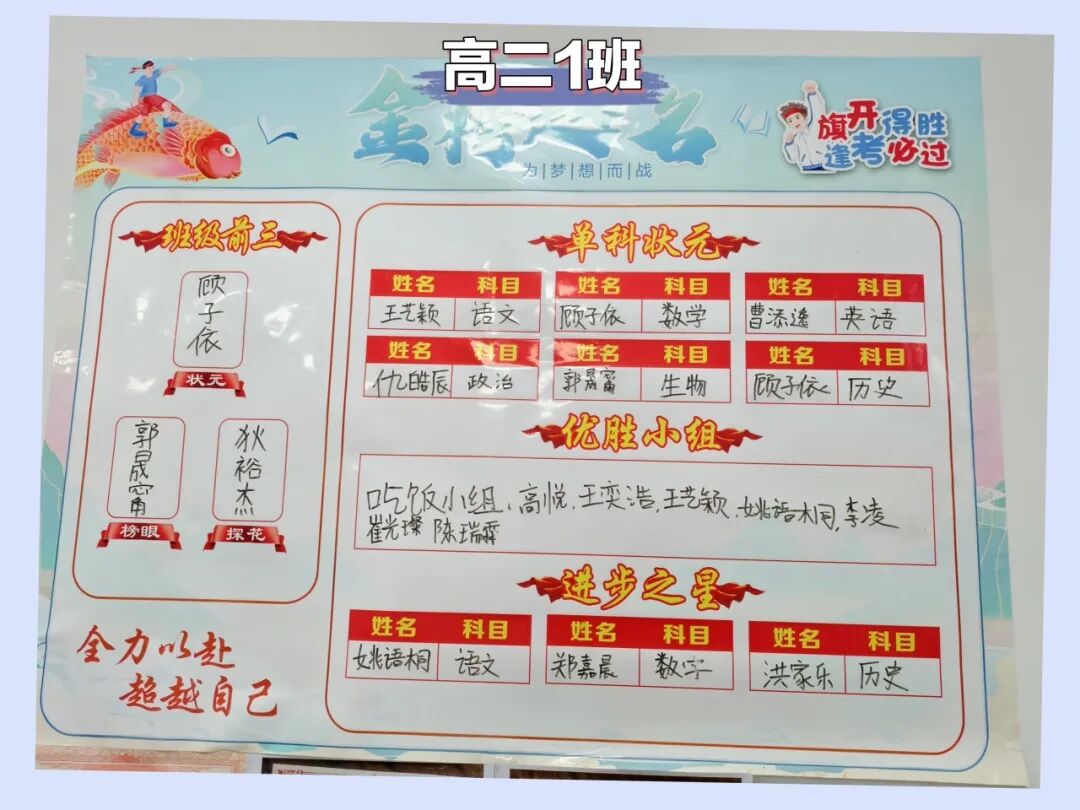 经过多轮严格考评与综合打分,最终评选结果新鲜出炉!高二(1) 班凭借全方位的出色表现,以鲜明的文化特色、严谨的纪律作风、整洁的班级环境斩获第一名;高二 (4)班在各项检查中表现优异,凭借团结向上的班风与扎实的文明建设成果荣获第二名;高一 (3)班作为新生班级,展现出强劲的成长势头,以规范的管理、温馨的氛围夺得第三名。